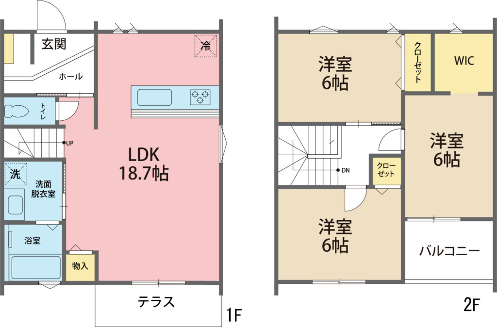 LDK18畳 1階 1室 洋室6畳 2階 3室 洋室 洋室 |