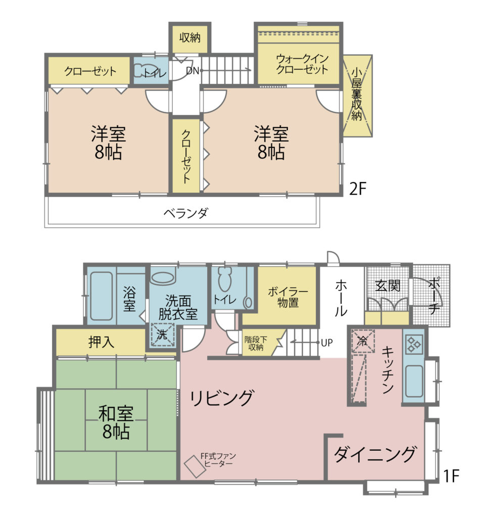 LDK1階 和室8畳 1階 洋室8畳 2階 洋室6畳 2階 |