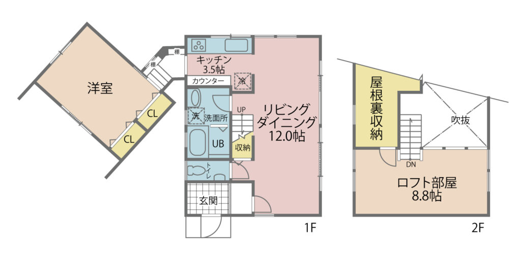 間取内容 LDK15.5畳 1階   洋室1階   S8.8畳 2階