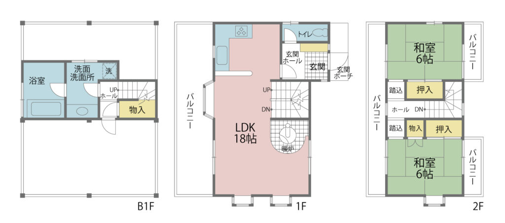 LDK18畳 1階 和室6畳 2階 和室6畳 2階 |